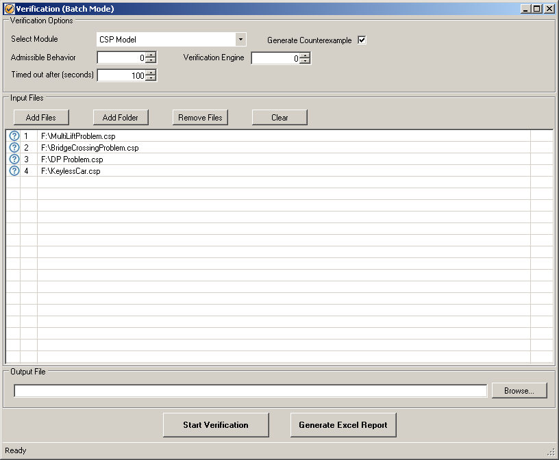 Batch Mode: Use this mode, you can get all the properties of a batch of model files verified with certain choices of options in one time. The whole verification result will be written into an output file you defined. These results can also be converted to excel files by clicking the button "Generate Excel Report".